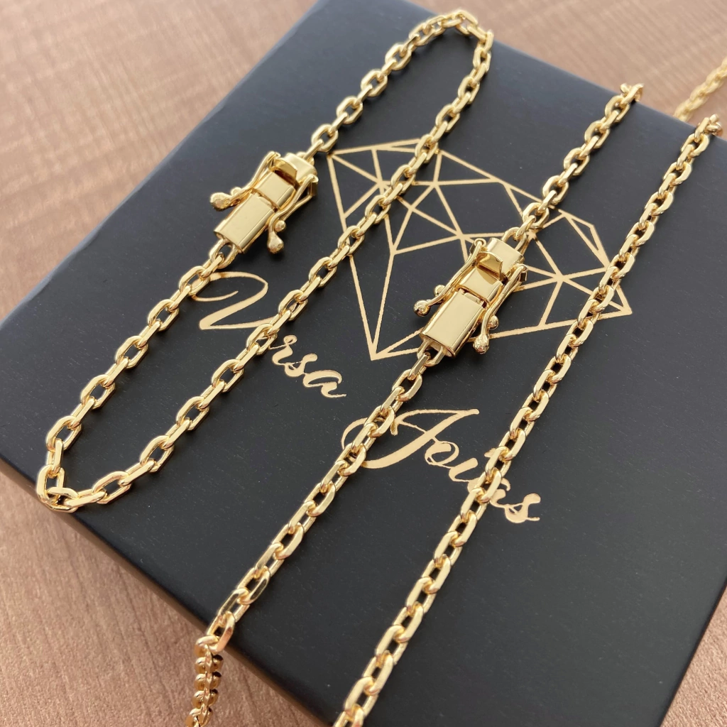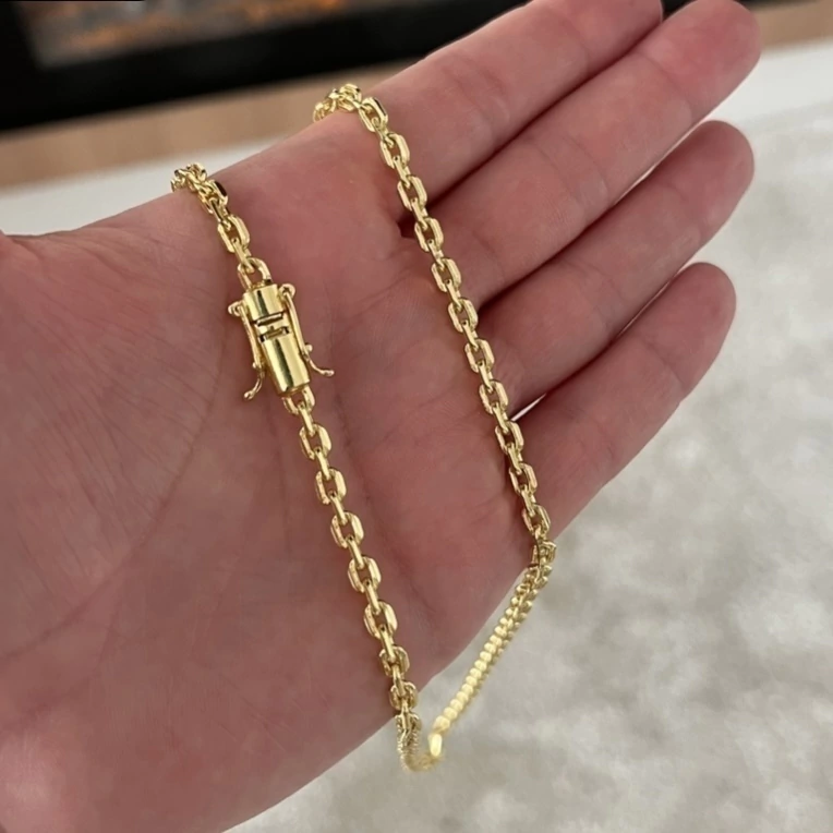 Nos dias de hoje, uma peça 100% ouro deixou de ser atrativo para a maioria das pessoas, por conta do alto valor, furto, insegurança ao sair! Adquirindo uma peça banhada, seu custo é muito menor e a qualidade e cor são idênticas a uma 100% maciça, podendo dar mais tranquilidade para o uso e manter esse acessório que é indispensável em qualquer estilo.