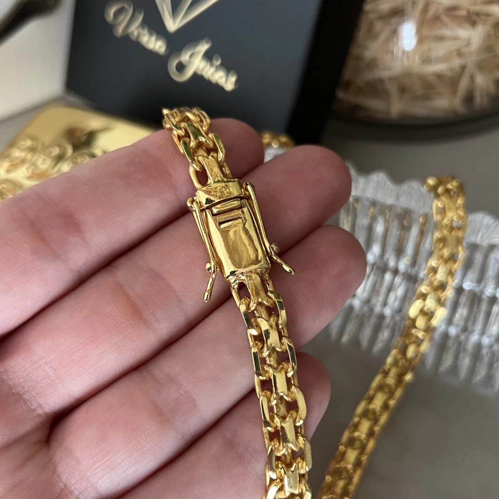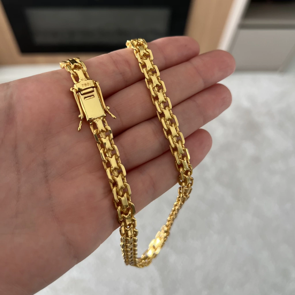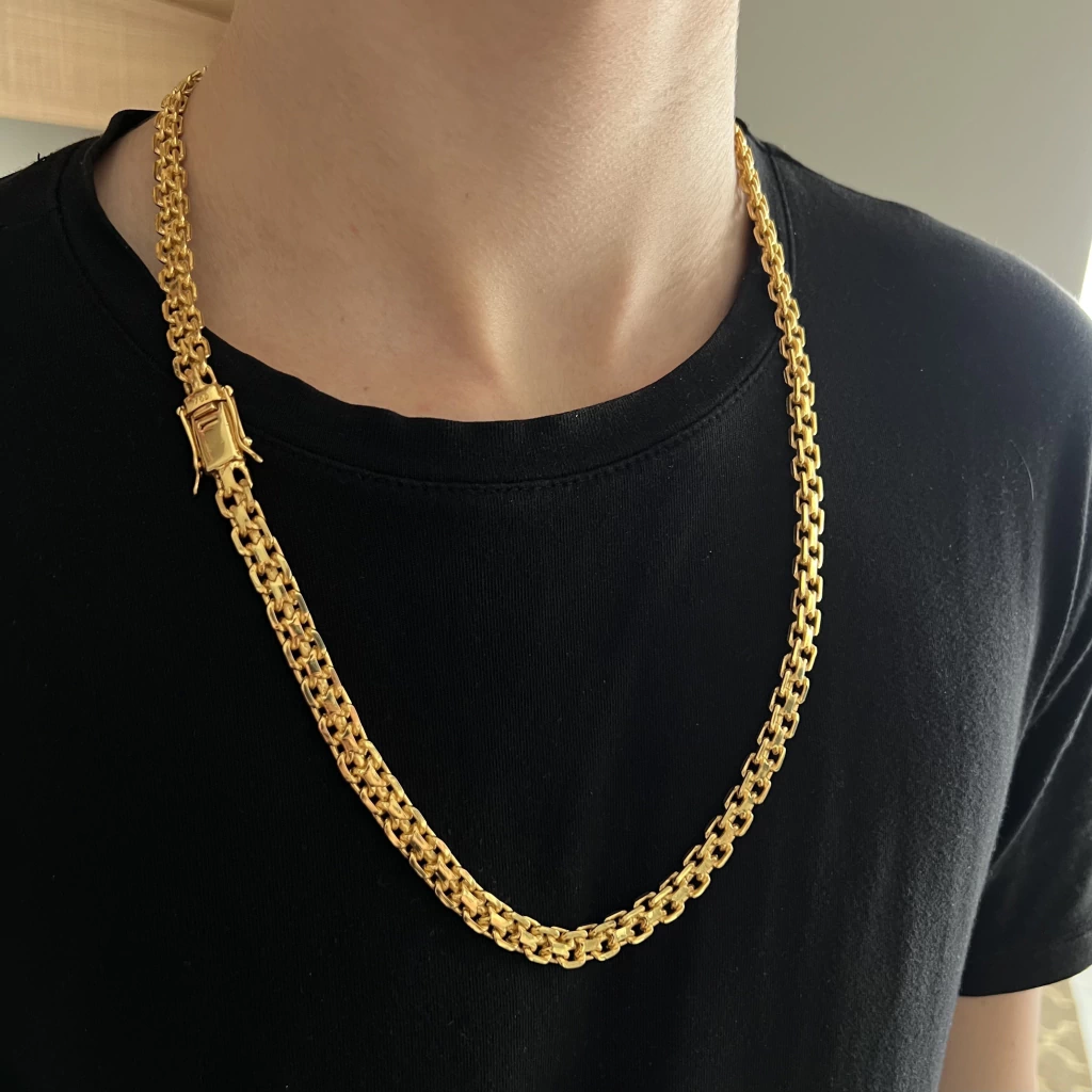 Nos dias de hoje, uma peça 100% ouro deixou de ser atrativo para a maioria das pessoas, por conta do alto valor, furto, insegurança ao sair! Adquirindo uma peça banhada, seu custo é muito menor e a qualidade e cor são idênticas a uma 100% maciça, podendo dar mais tranquilidade para o uso e manter esse acessório que é indispensável em qualquer estilo.