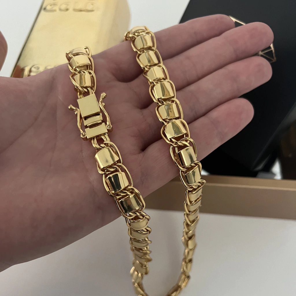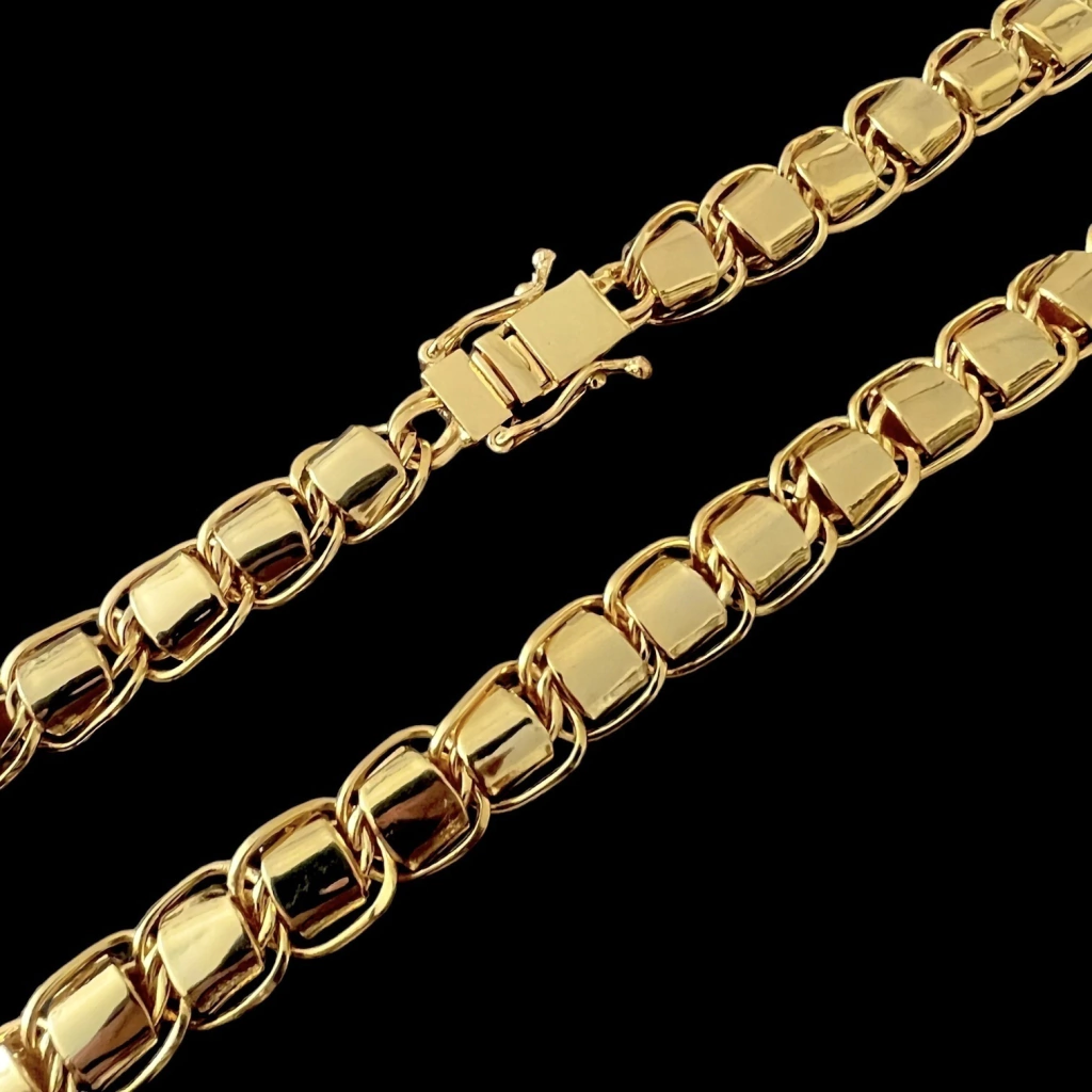 Nos dias de hoje, uma peça 100% ouro deixou de ser atrativo para a maioria das pessoas, por conta do alto valor, furto, insegurança ao sair! Adquirindo uma peça banhada, seu custo é muito menor e a qualidade e cor são idênticas a uma 100% maciça, podendo dar mais tranquilidade para o uso e manter esse acessório que é indispensável em qualquer estilo.