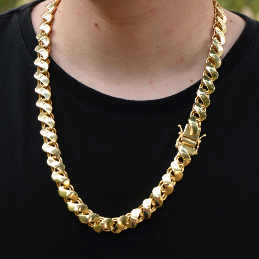 Nos dias de hoje, uma peça 100% ouro deixou de ser atrativo para a maioria das pessoas, por conta do alto valor, furto, insegurança ao sair! Adquirindo uma peça banhada, seu custo é muito menor e a qualidade e cor são idênticas a uma 100% maciça, podendo dar mais tranquilidade para o uso e manter esse acessório que é indispensável em qualquer estilo.