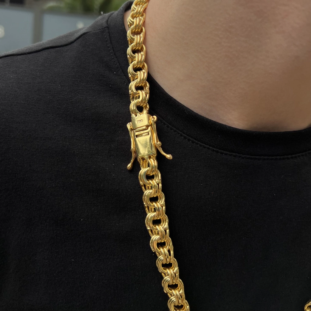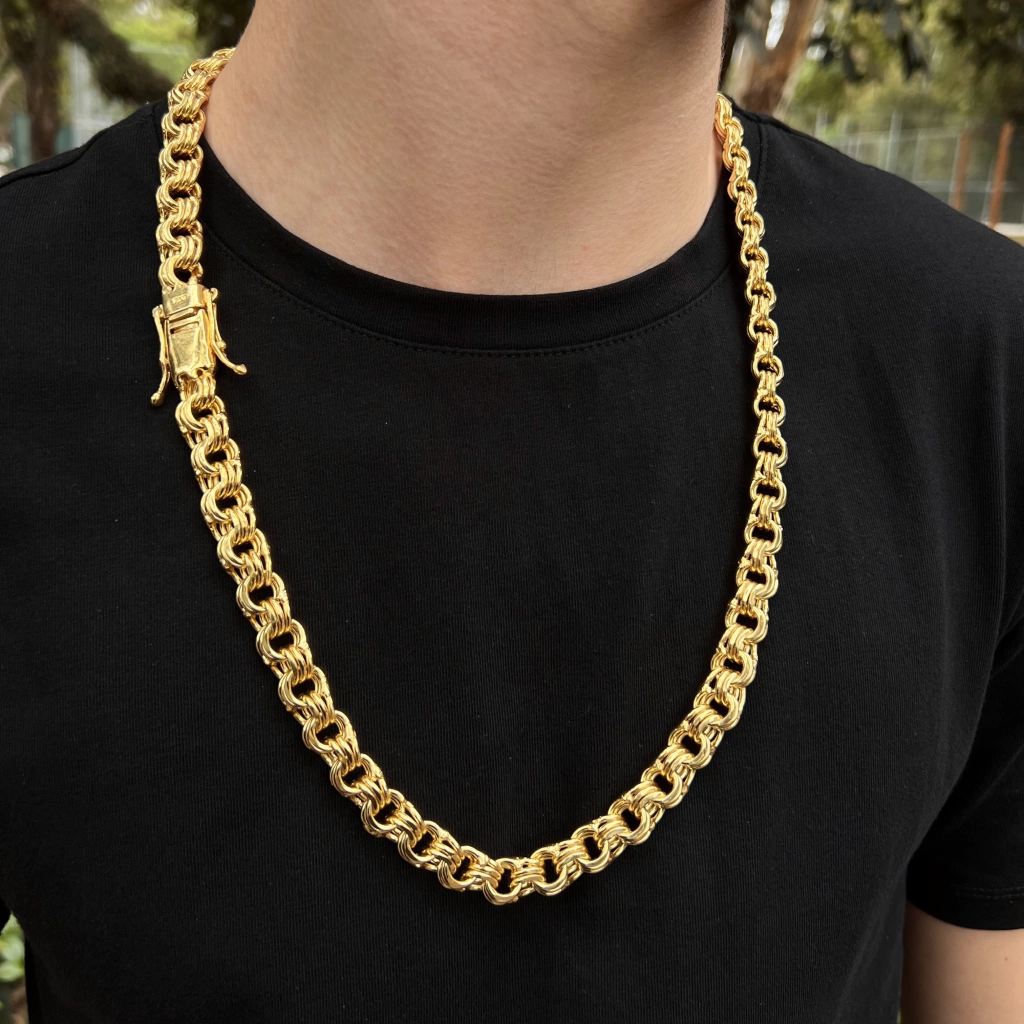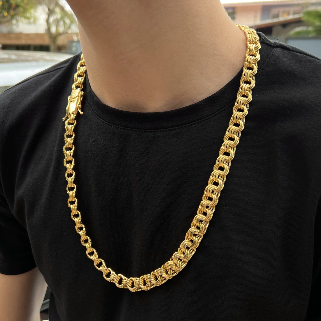 Nos dias de hoje, uma peça 100% ouro deixou de ser atrativo para a maioria das pessoas, por conta do alto valor, furto, insegurança ao sair! Adquirindo uma peça banhada, seu custo é muito menor e a qualidade e cor são idênticas a uma 100% maciça, podendo dar mais tranquilidade para o uso e manter esse acessório que é indispensável em qualquer estilo.