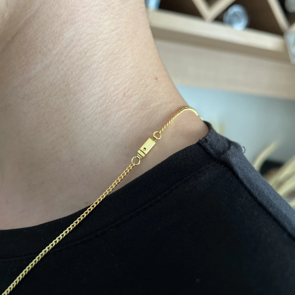 Trabalhamos com peças de alto padrão de qualidade! Peças desenvolvidas por ourives. Nosso material é desenvolvido em uma liga metálica com cobre, material feito especialmente para receber a aplicação do banho em Ouro18k em 10 milésimos (10 milésimos = 10 camadas em Ouro18k). Além da aplicação do banho, nossas peças ainda possuem um verniz importado de proteção que ajuda na durabilidade e preserva a matéria prima aplicada em sua joia!