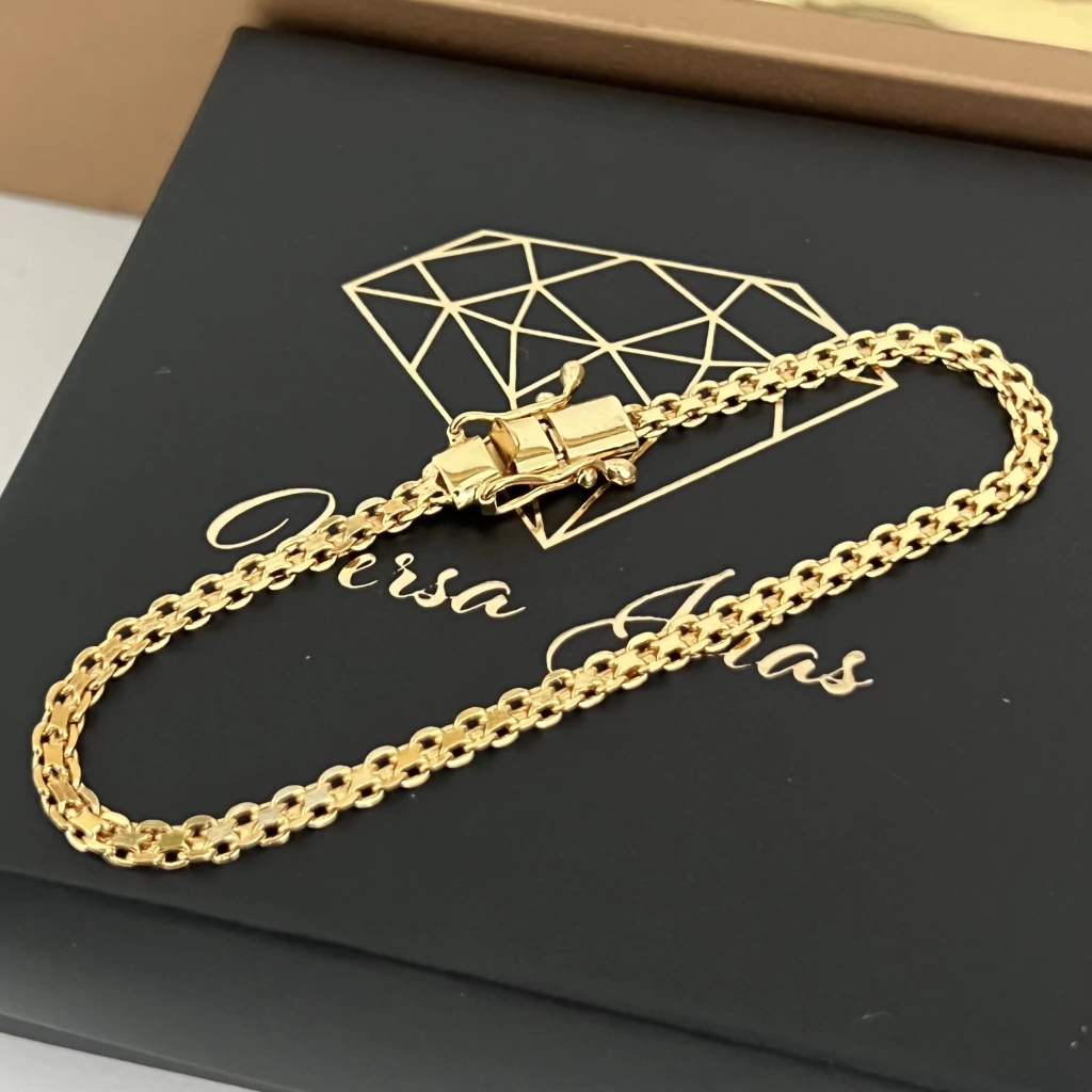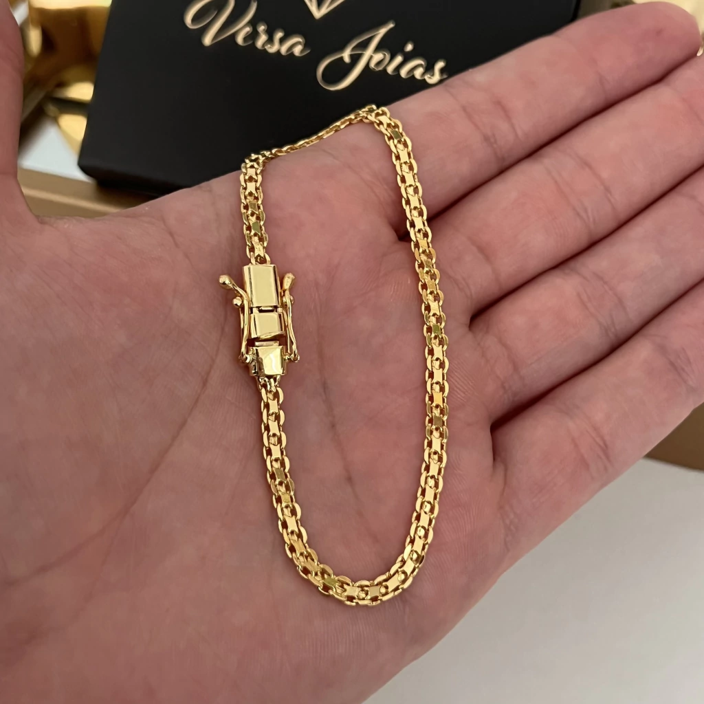 Nos dias de hoje, uma peça 100% ouro deixou de ser atrativo para a maioria das pessoas, por conta do alto valor, furto, insegurança ao sair! Adquirindo uma peça banhada, seu custo é muito menor e a qualidade e cor são idênticas a uma 100% maciça, podendo dar mais tranquilidade para o uso e manter esse acessório que é indispensável em qualquer estilo.