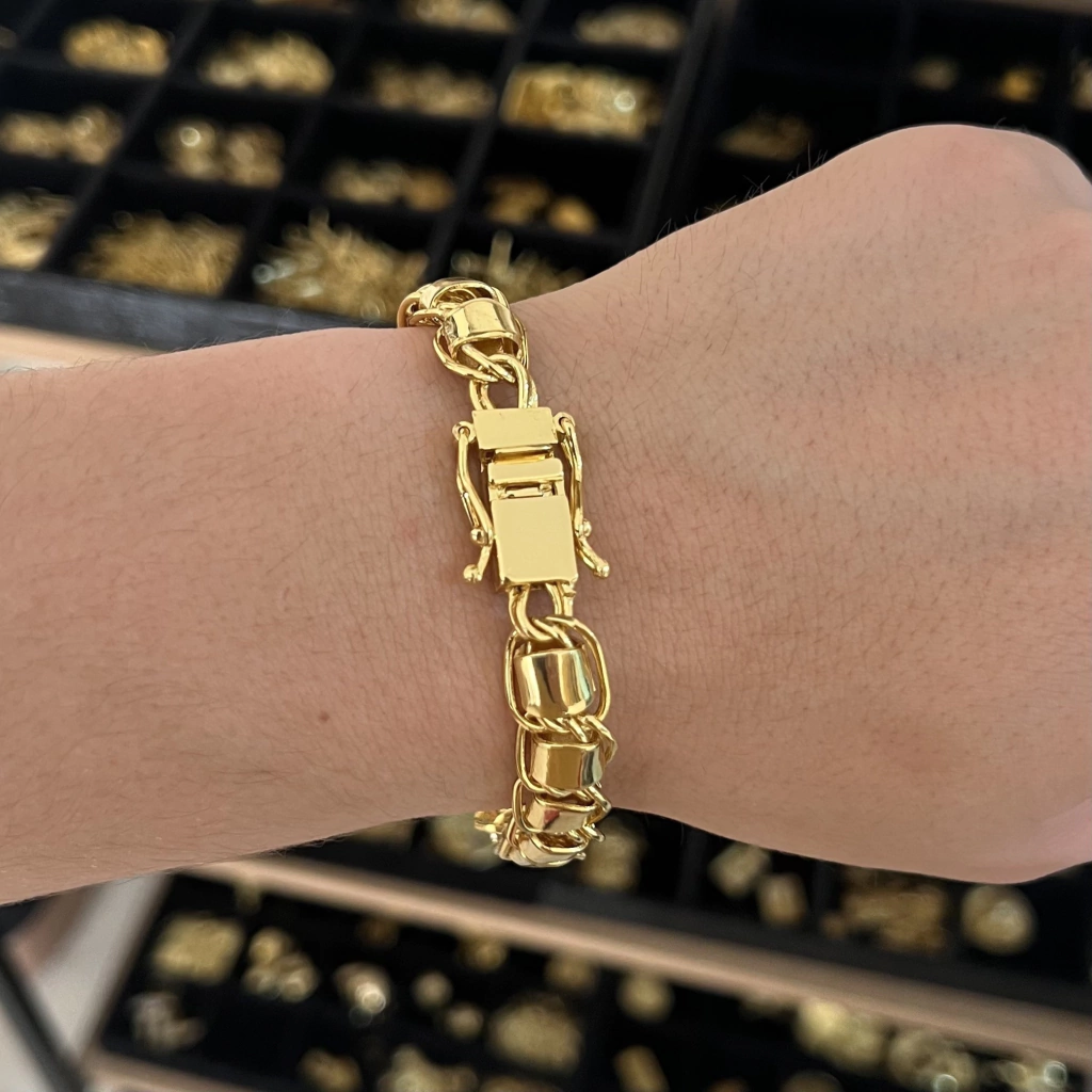 Nos dias de hoje, uma peça 100% ouro deixou de ser atrativo para a maioria das pessoas, por conta do alto valor, furto, insegurança ao sair! Adquirindo uma peça banhada, seu custo é muito menor e a qualidade e cor são idênticas a uma 100% maciça, podendo dar mais tranquilidade para o uso e manter esse acessório que é indispensável em qualquer estilo.