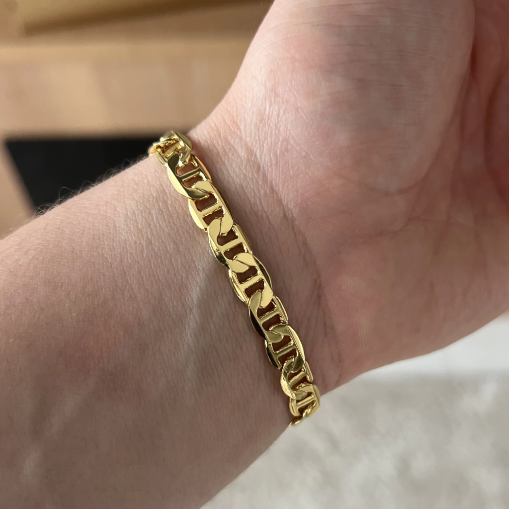 Nos dias de hoje, uma peça 100% ouro deixou de ser atrativo para a maioria das pessoas, por conta do alto valor, furto, insegurança ao sair! Adquirindo uma peça banhada, seu custo é muito menor e a qualidade e cor são idênticas a uma 100% maciça, podendo dar mais tranquilidade para o uso e manter esse acessório que é indispensável em qualquer estilo.